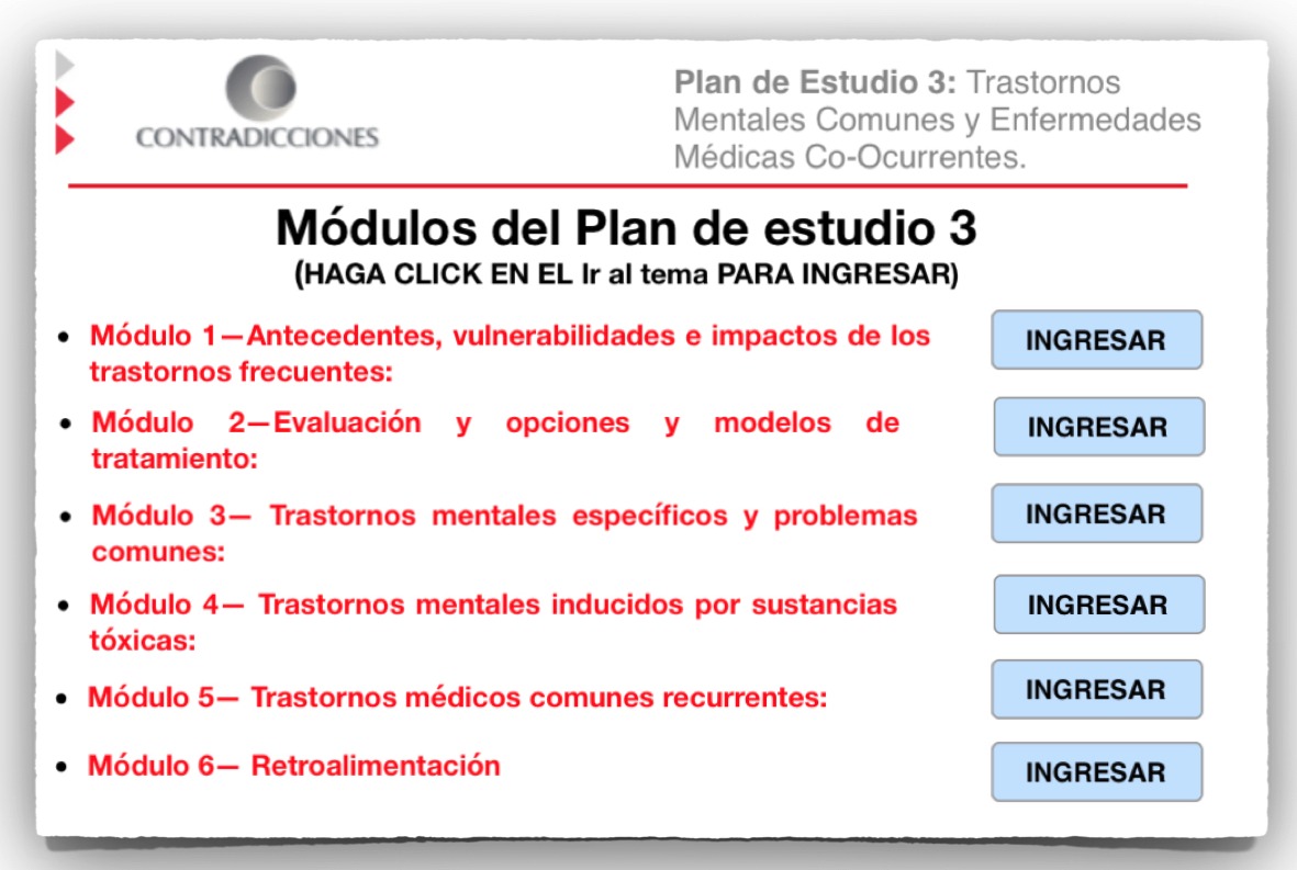 Plan de estudios 3: Trastornos Mentales Comunes y Enfermedades Médicas Co-Ocurrentes.
